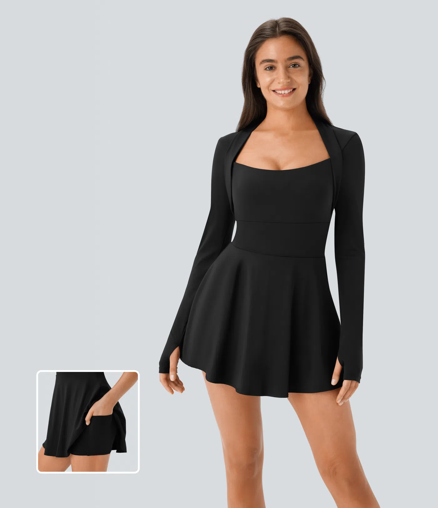 €42,95 EUR004.7SoftlyZero™ Airy Long Sleeve Thumb Hole 2-in-1 Pocket Flare Cool Touch Micro Mini Pickleball Dress