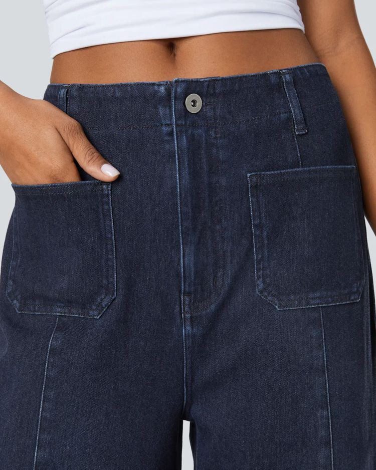 Jeans Halara Flex™ Denim pierna ancha elástico lavado bolsillo delantero tiro alto