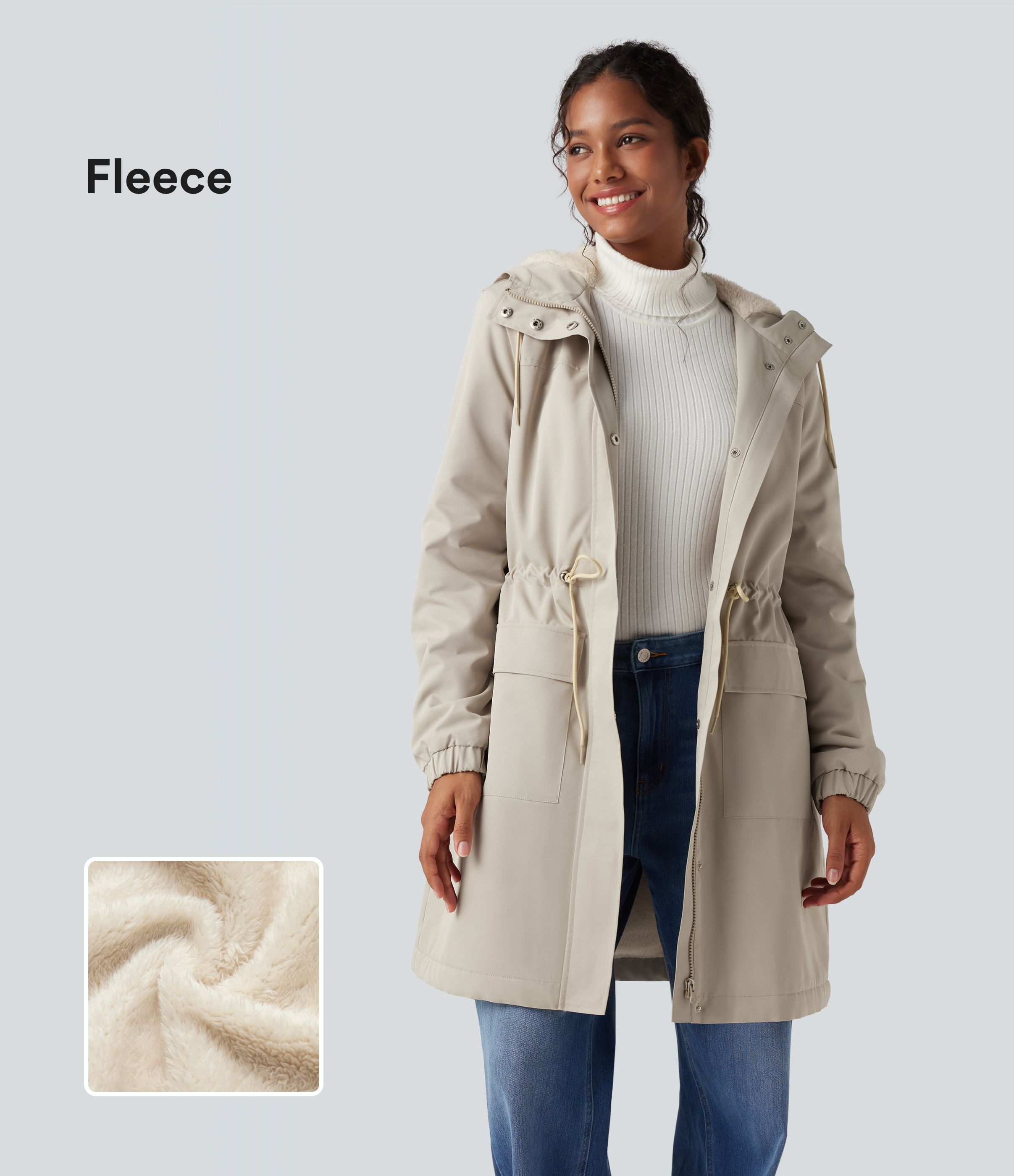 Hooded Long Sleeve Drawstring Longline Fleece Casual Parka Coat with Pockets