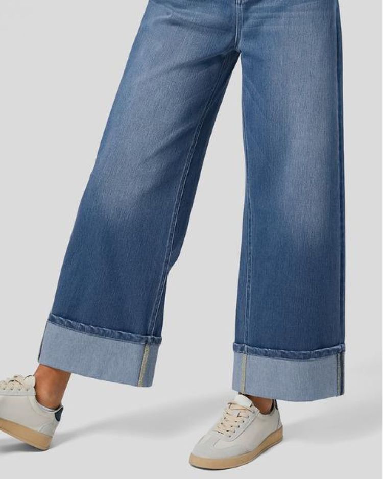 The ankle-length, wide-leg silhouette with cuffed hems pairs effortlessly with any footwear for a sleek, year-round look.