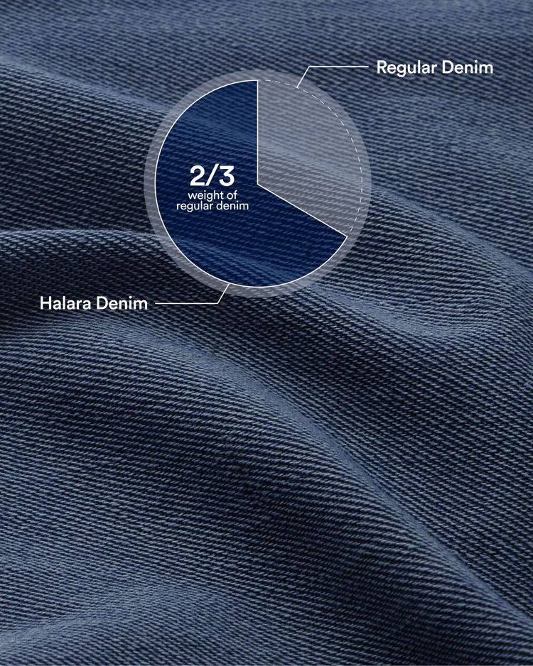 Weighing just 2/3 of traditional denim—about the same as an iPhone—this denim is so light, it feels almost weightless.
