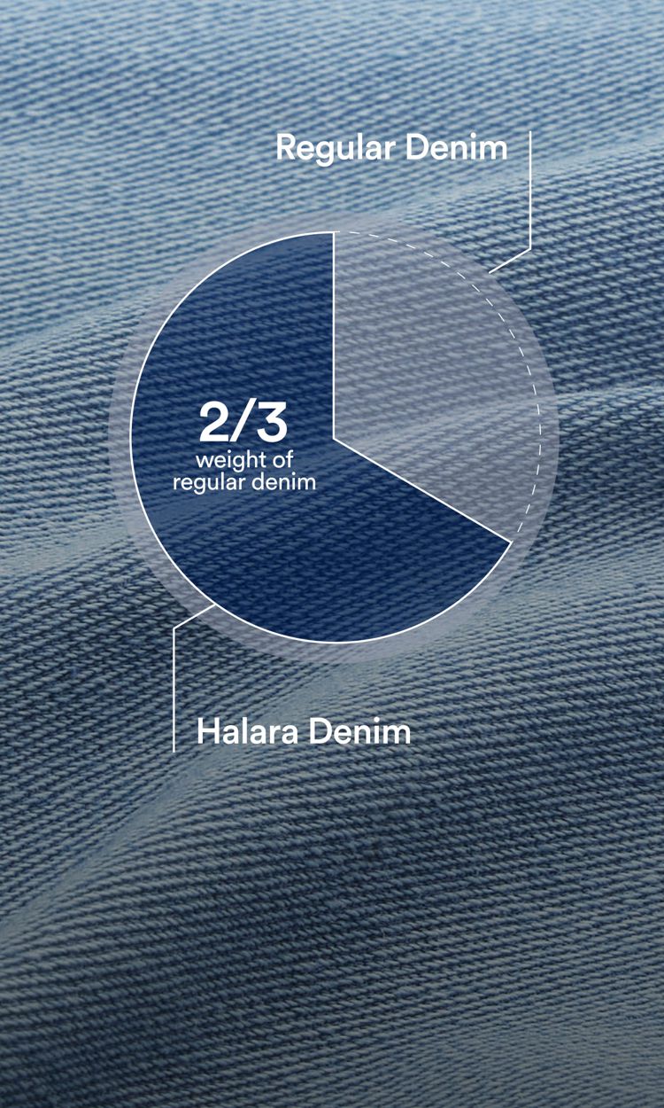 Weighing just 2/3 of traditional denim—about the same as an iPhone—this denim is so light, it feels almost weightless.