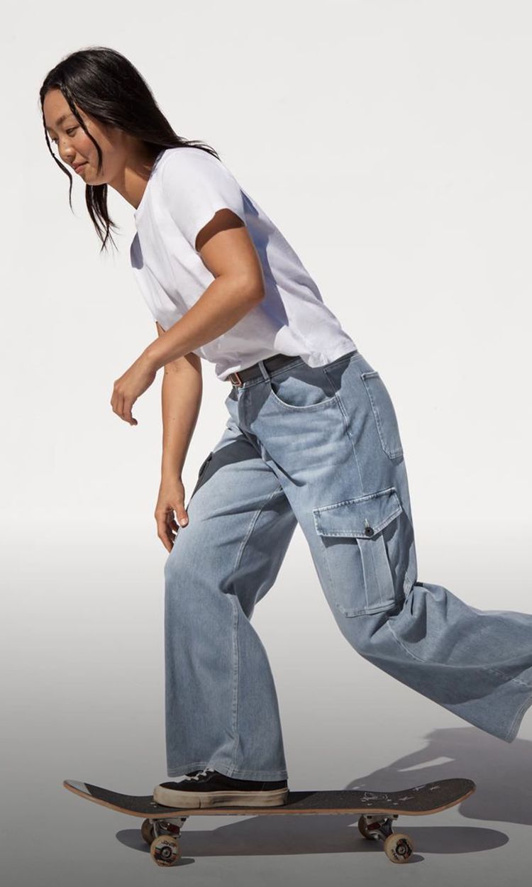 Stylish cargo jeans with ample pockets, perfect for a functional, on-the-go look.