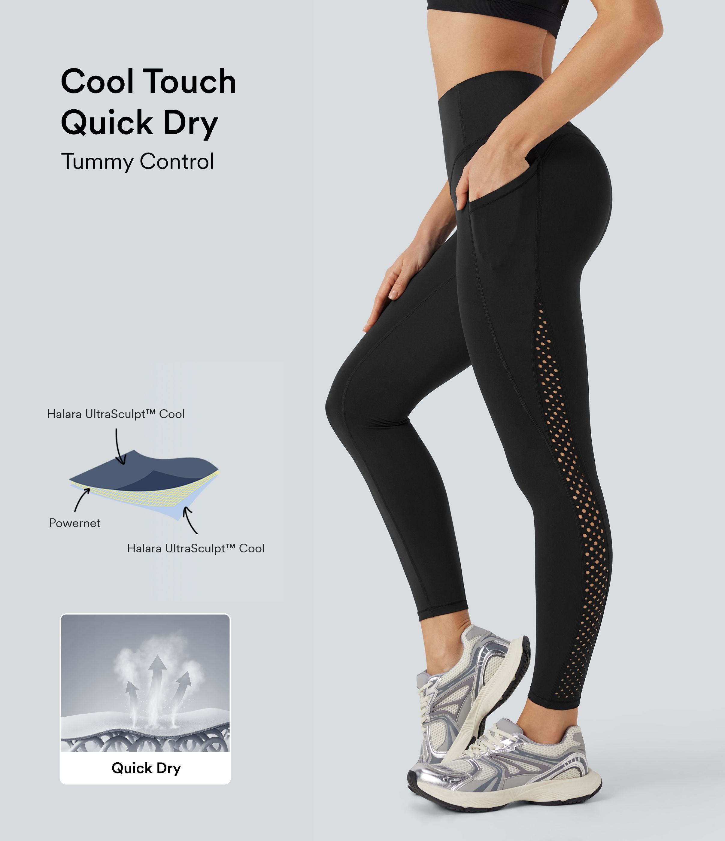 Halara UltraSculpt™ Cool Quick Dry SoCinched Hoge Taille Buikcontrole Geventileerde Geperforeerde Yoga Legging met Zakken - UPF50+