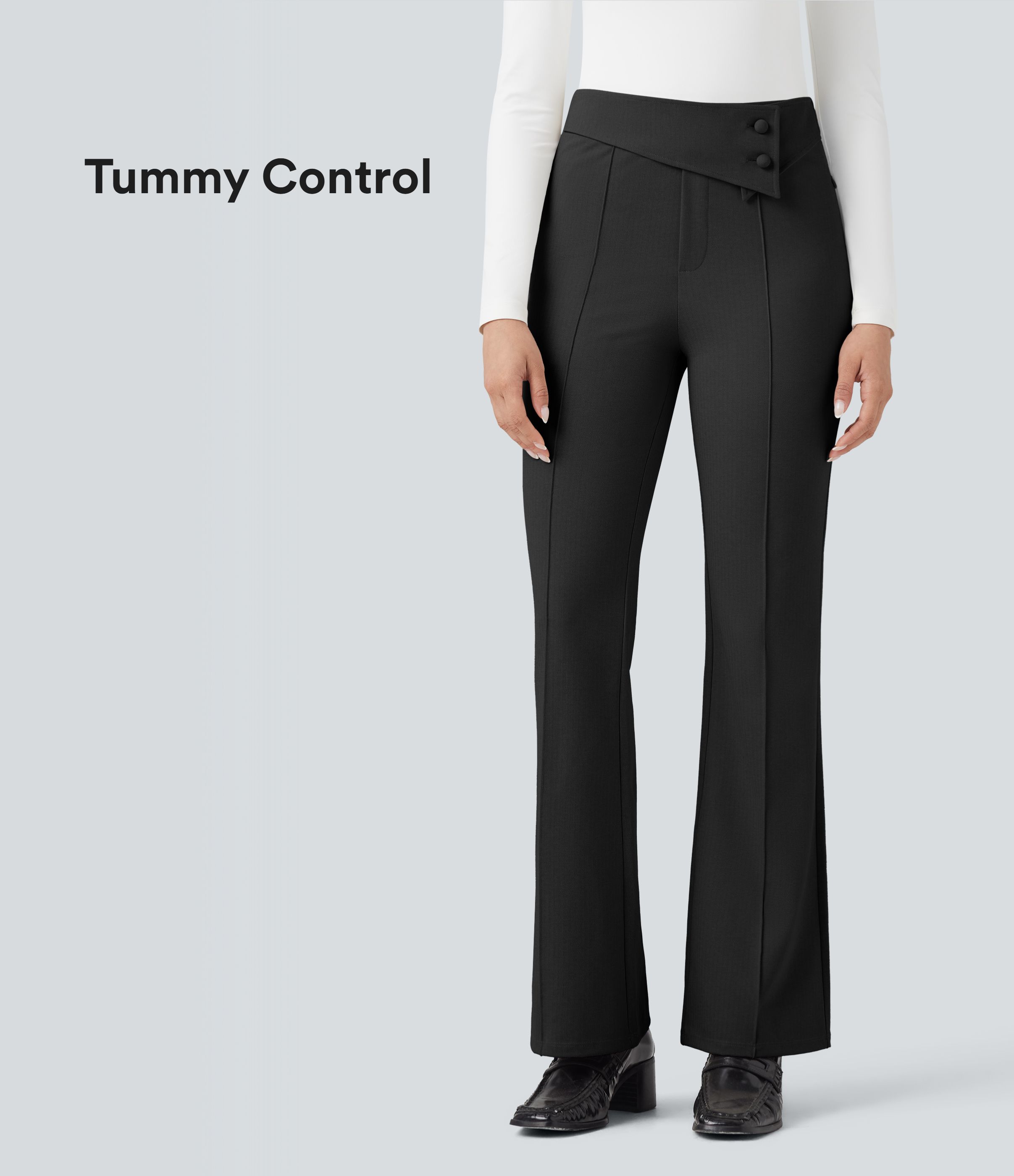 Pantalon de travail évasé Halara Flex™ à taille haute avec contrôle du ventre et poches, motif chevrons