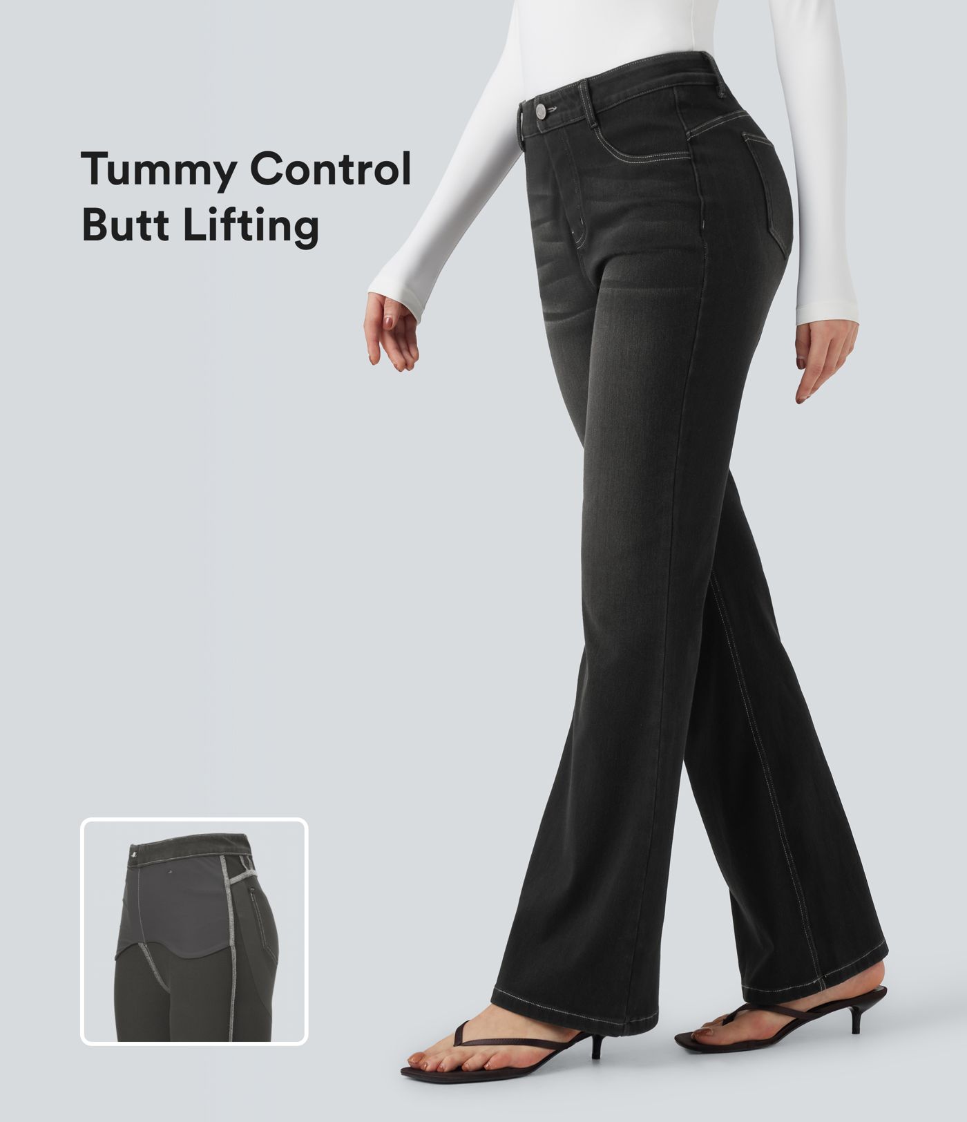 Halara Flex™ vysoké legíny s tvarováním břicha a zvedáním hýždí, džínového vzhledu, v casual bootcut střihu, s kapsami