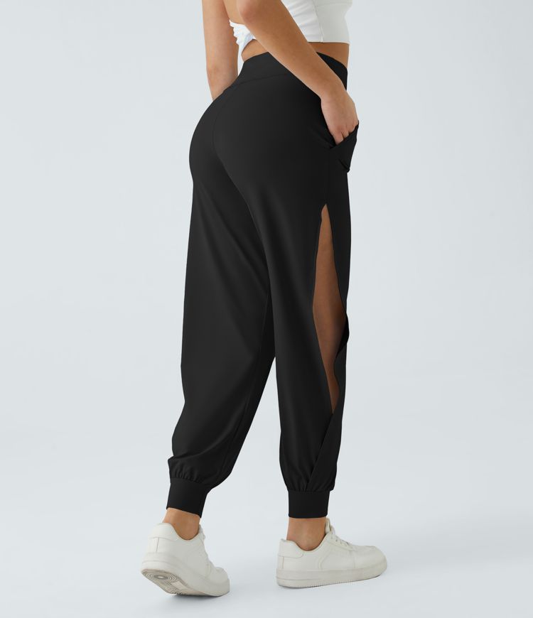High Waisted Pocket Cut Out Cool Touch Casual Joggers-UPF50+