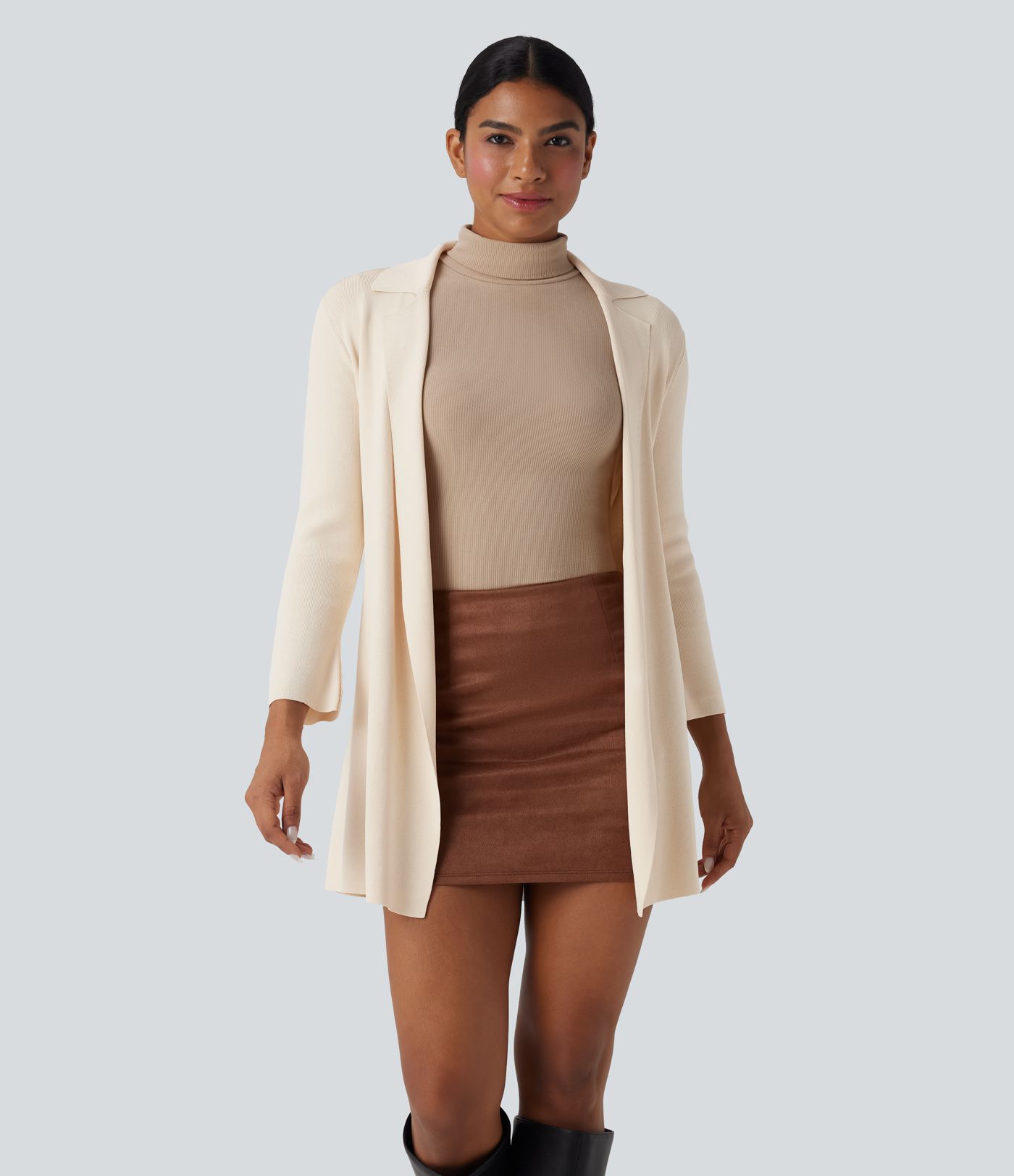 Notched Collar Long Sleeve Belted Work Cardigan
