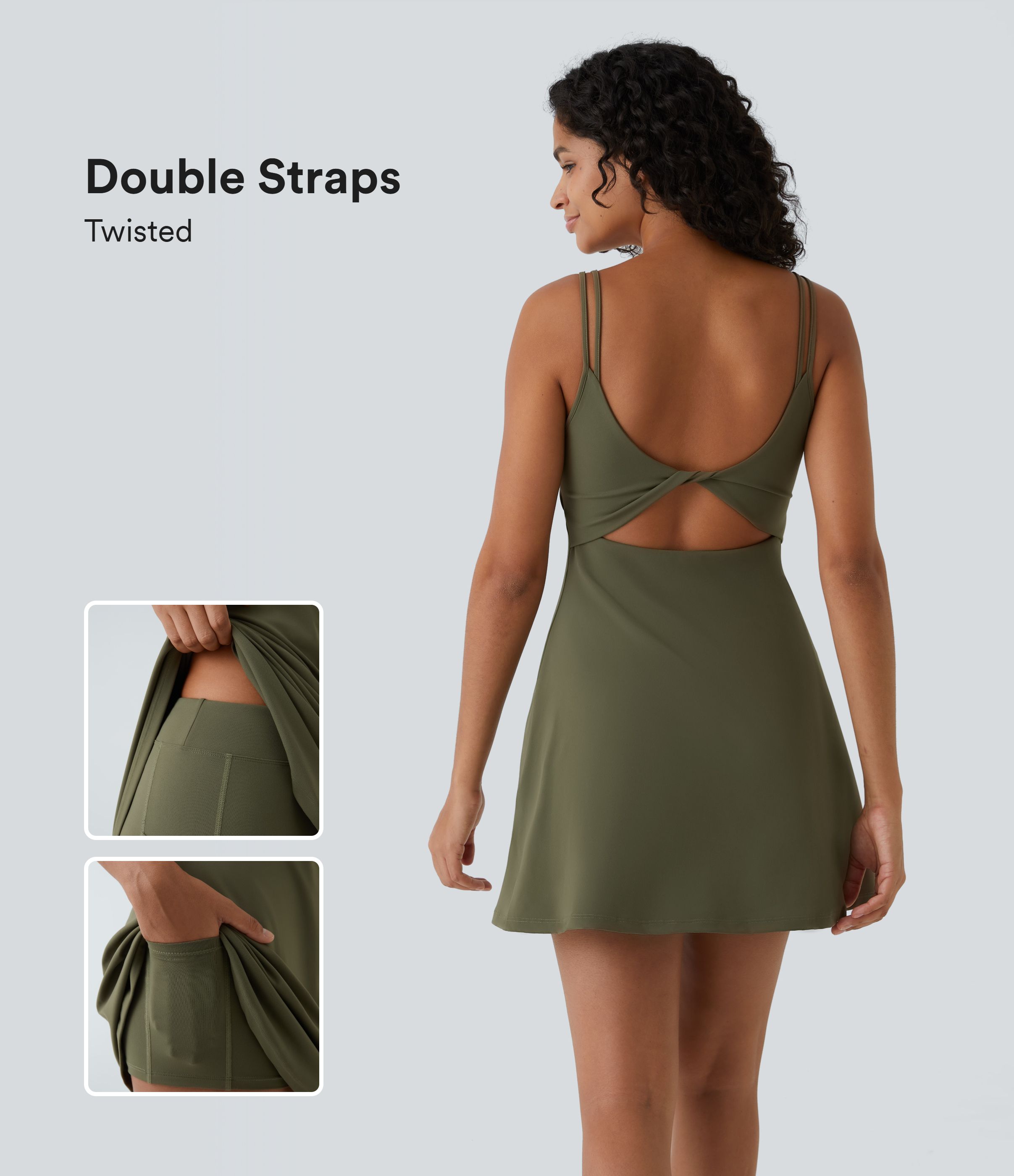 SoftlyZero™ Plush Double Straps 2-Piece Pocket Slip Dance Active Dress A-C Cups