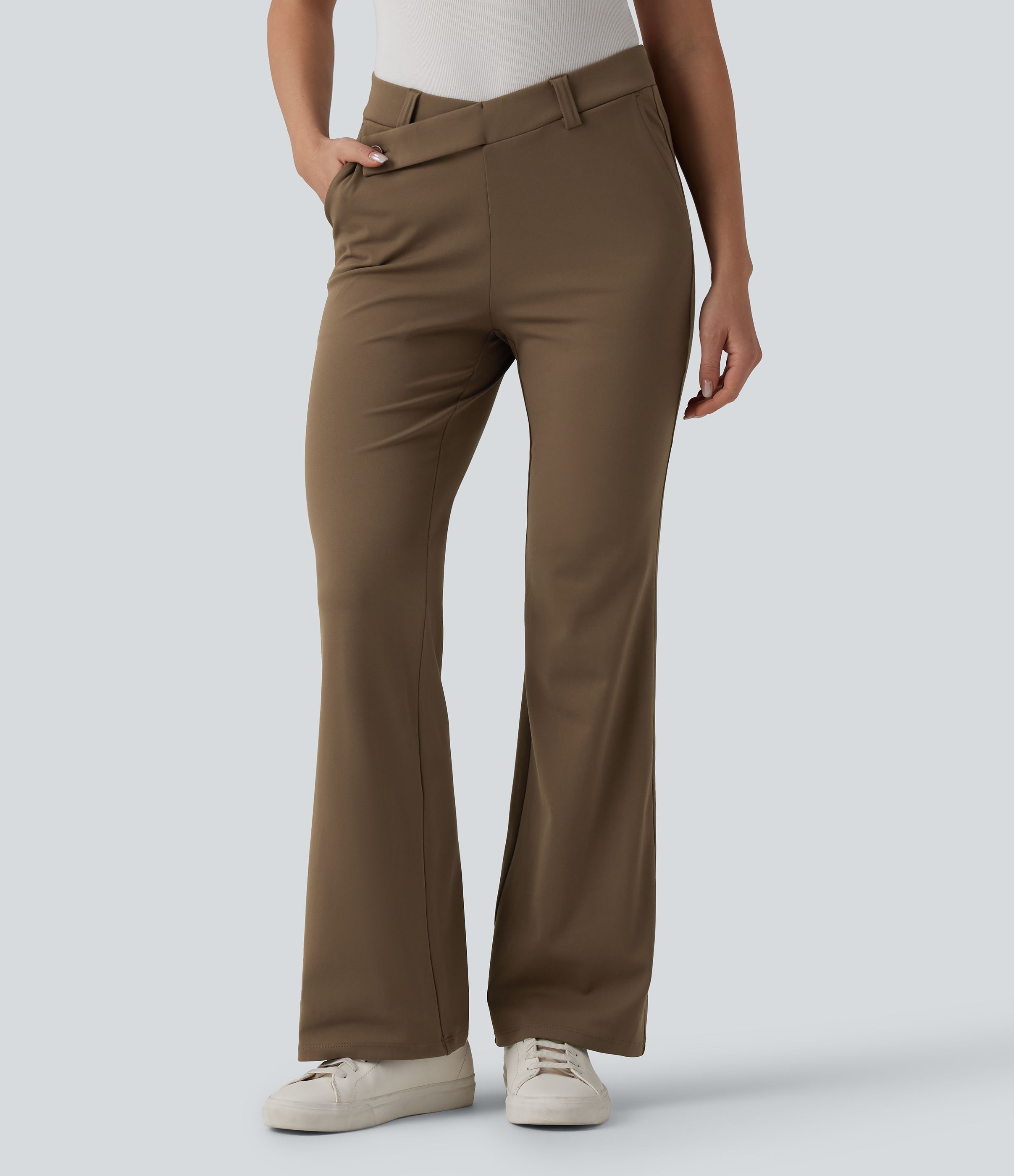 Halara Flex™ DayStretch asimetrične zvonaste radne hlače sa srednjim strukama i džepovima