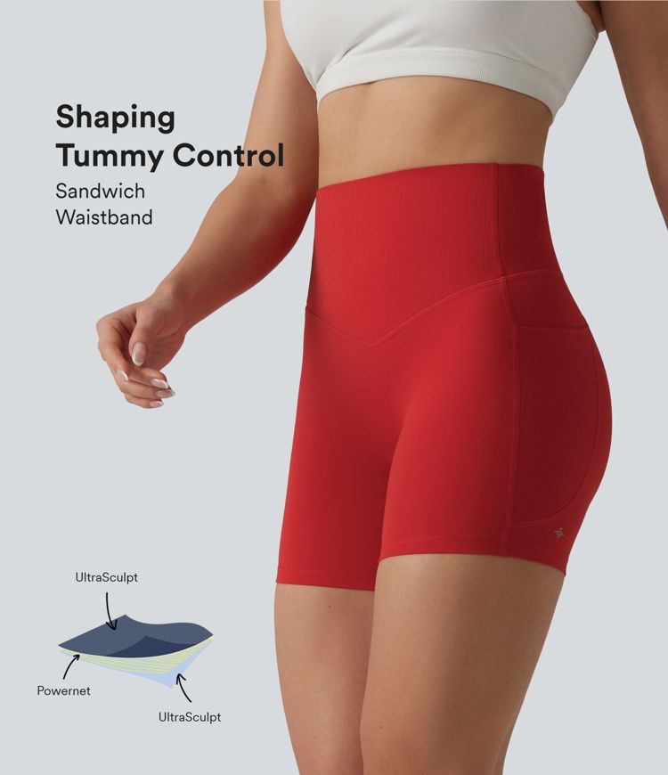 Halara UltraSculpt™ High Waisted Tummy Control Contrast Ribbed Yoga Biker Shorts 5'' with Pockets