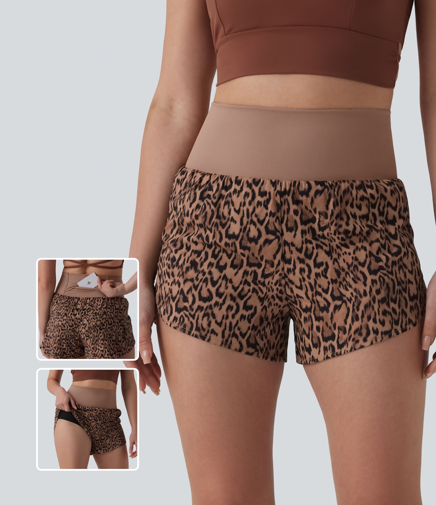 High Waisted 2-in-1 Leopard Print Running Shorts 3'' with Pocket