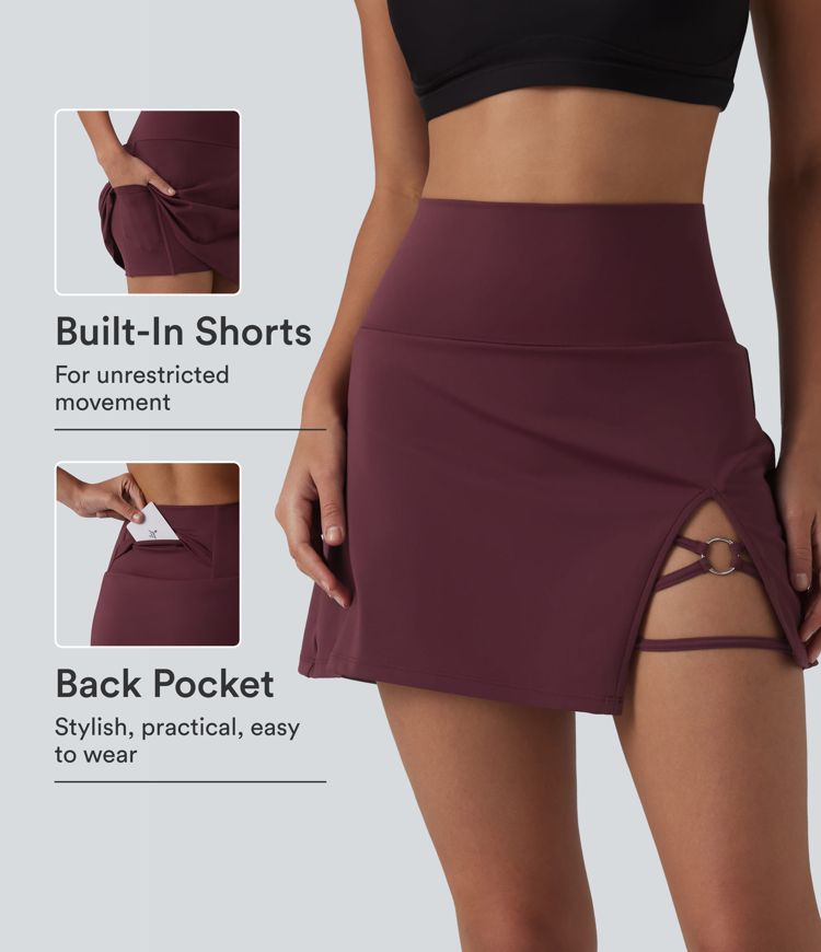 High Waisted Asymmetric Hem 2-in-1 A-line Mini Dance Skirt with Pockets