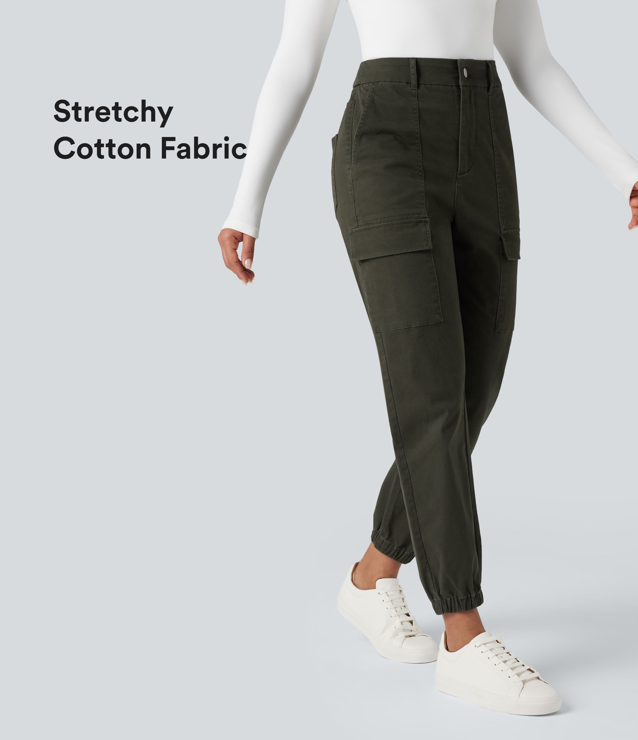 High-waisted Casual Chino Cotton Cargo Joggers with Pockets