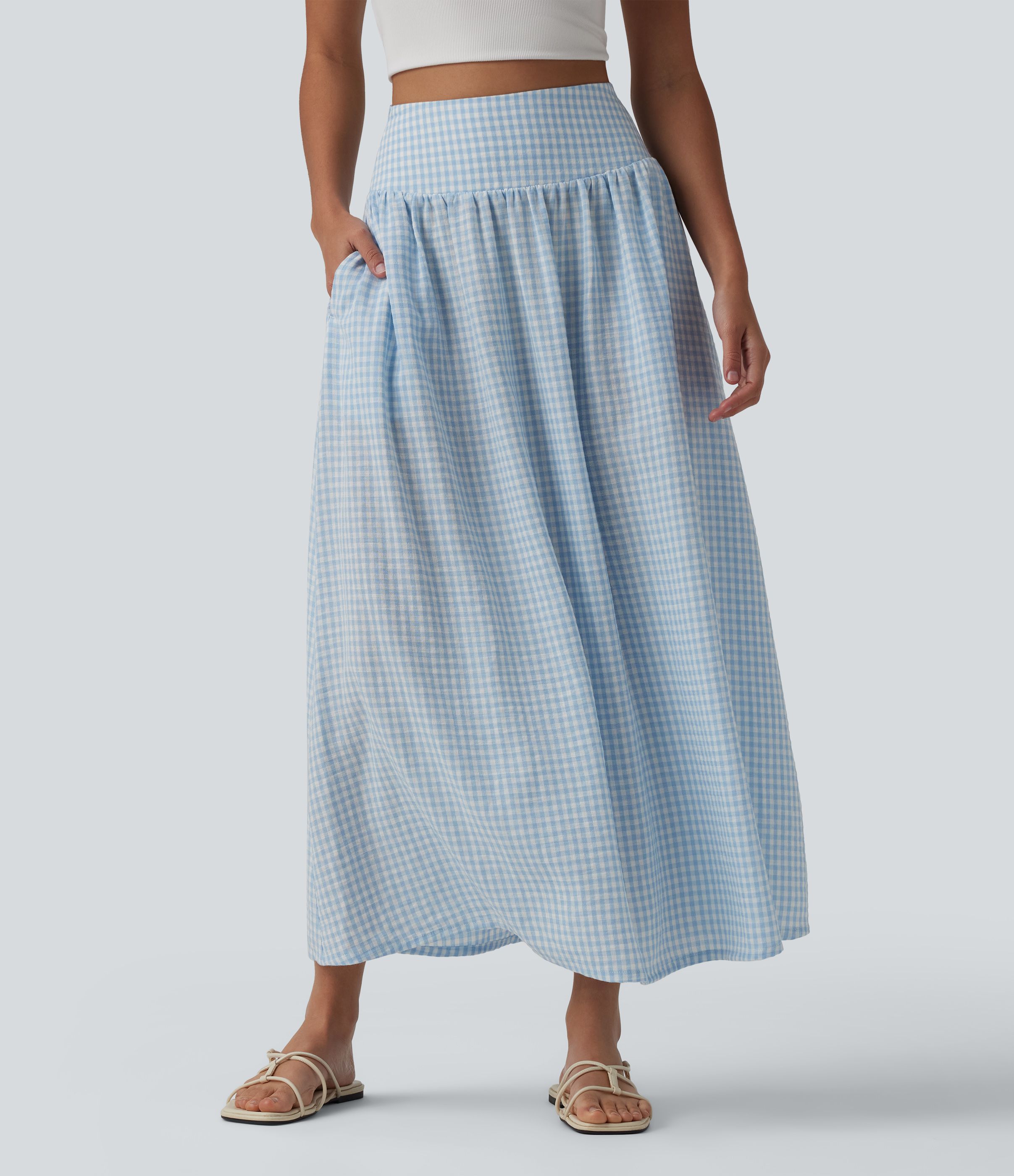 High Waisted Plaid Midi Casual Skirt with Pockets