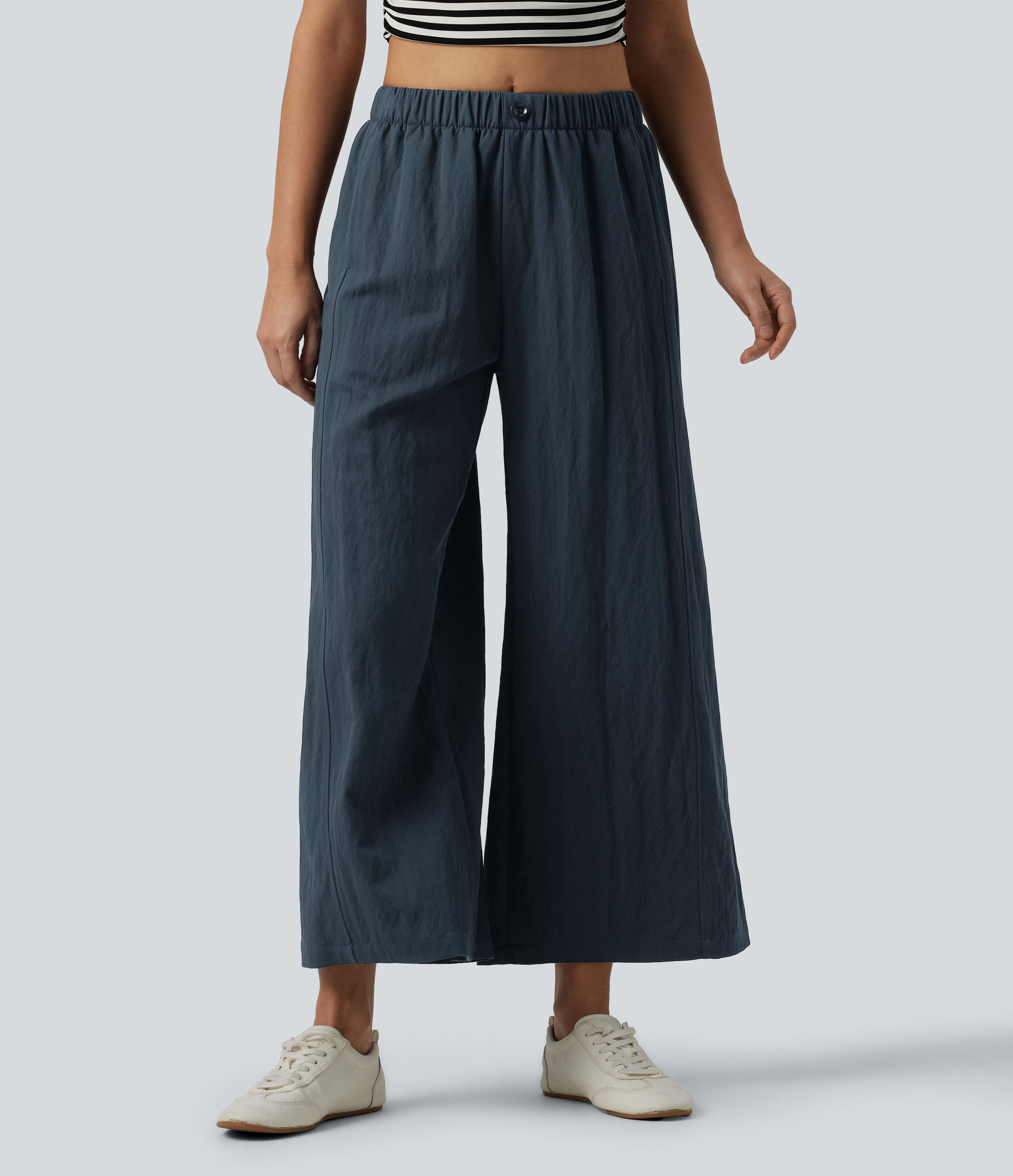 Pantalon décontracté taille mi-haute à coupe large avec poches