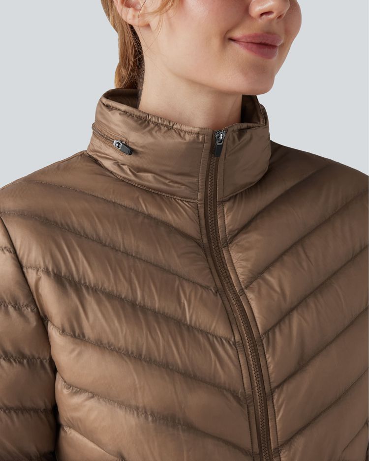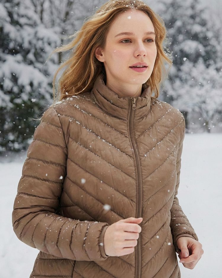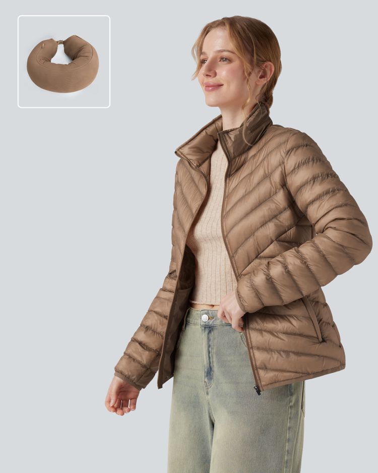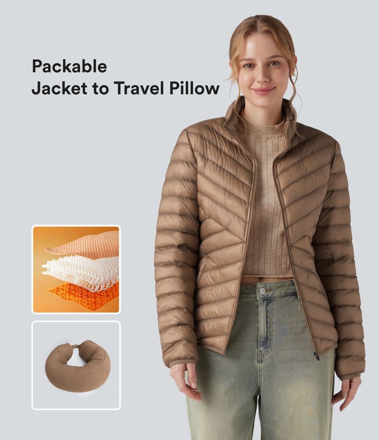 Packable Stand Collar Long Sleeve Zipper Casual Synthetic Down Jacket with Pockets