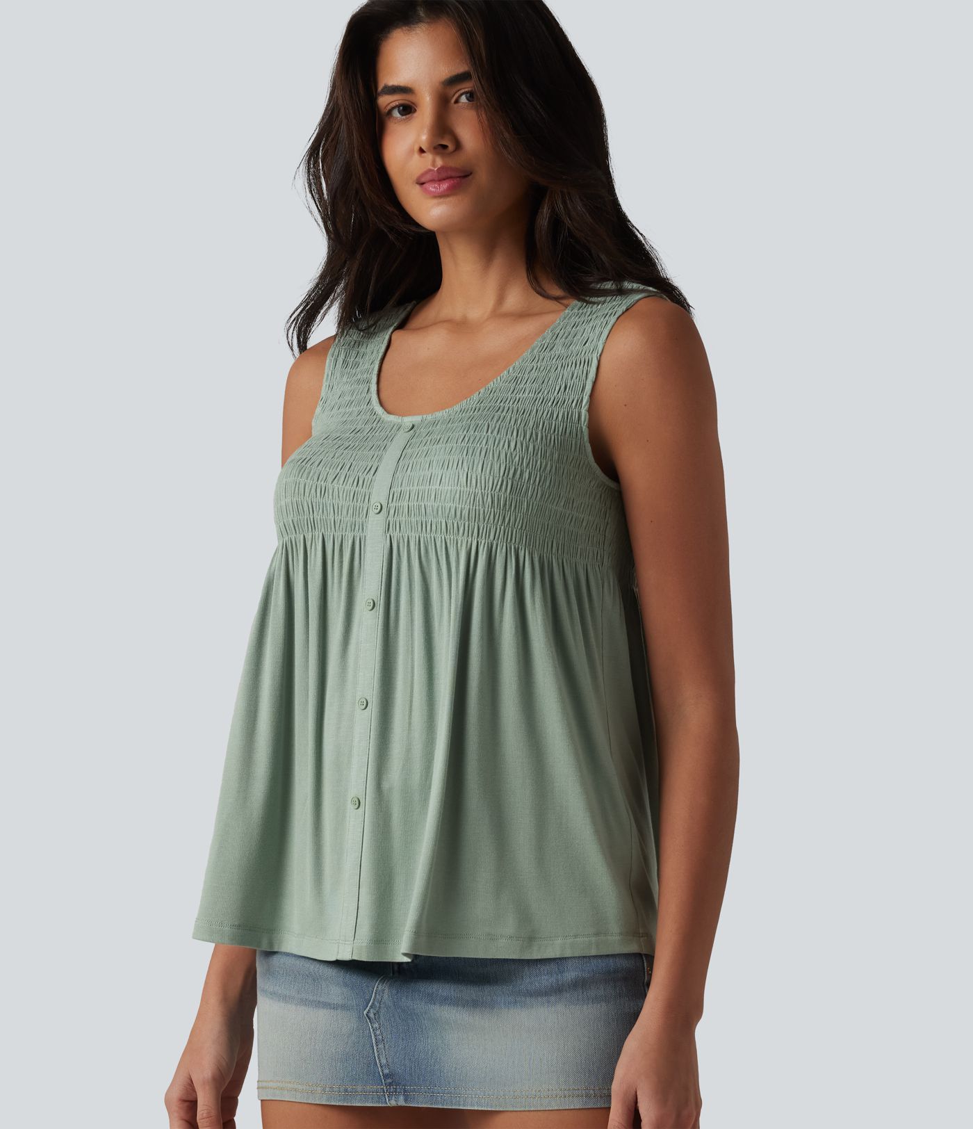 Round Neck Shirred Draped Casual Tank Top
