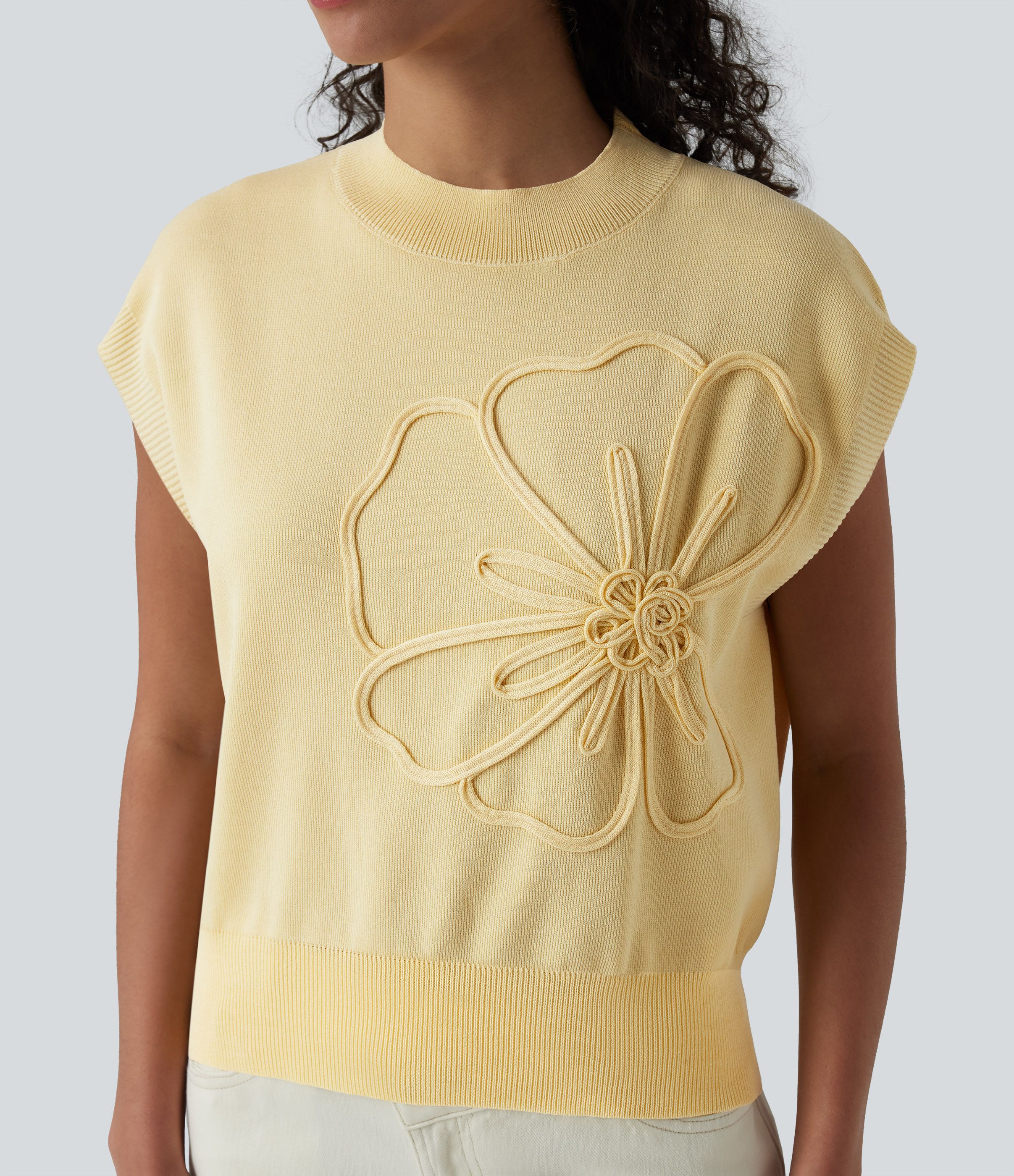 Hversdagsleg ermalaus peysa með hringhálsi