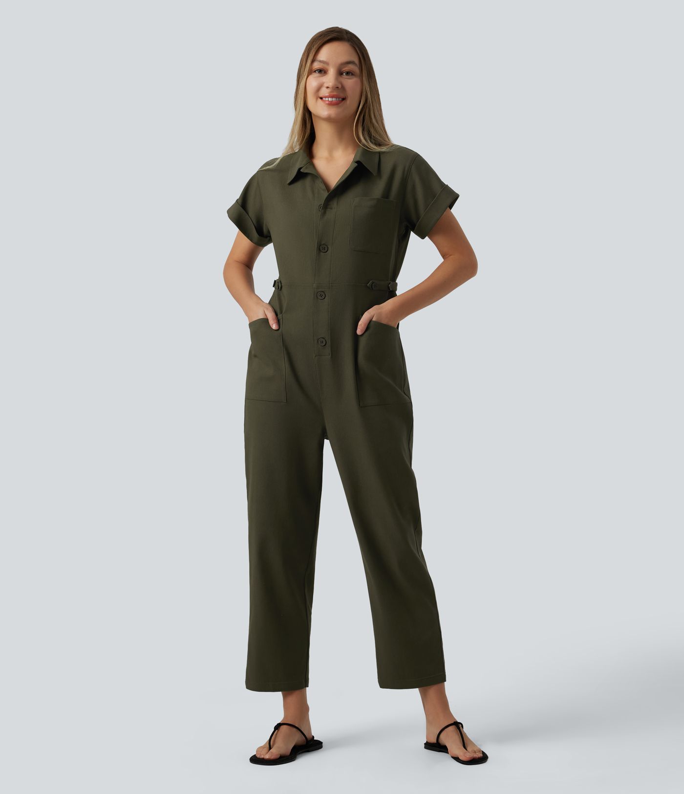 Salopetă casual cu mâneci scurte și buzunare