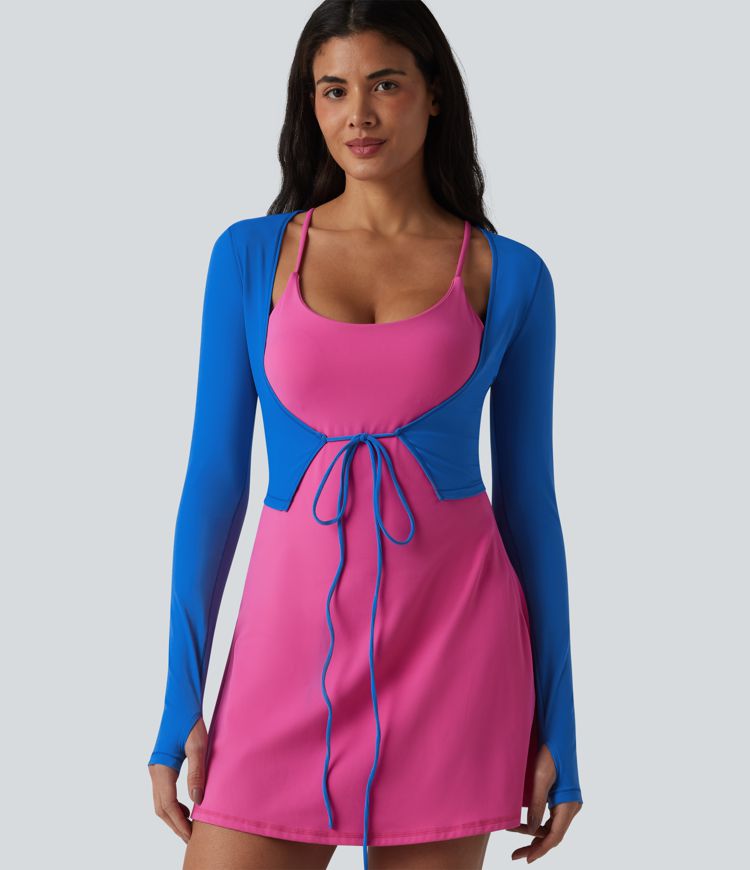 SoftlyZero™ Plush Long Sleeve Thumb Hole Tie Front Cropped Yoga Sports Top