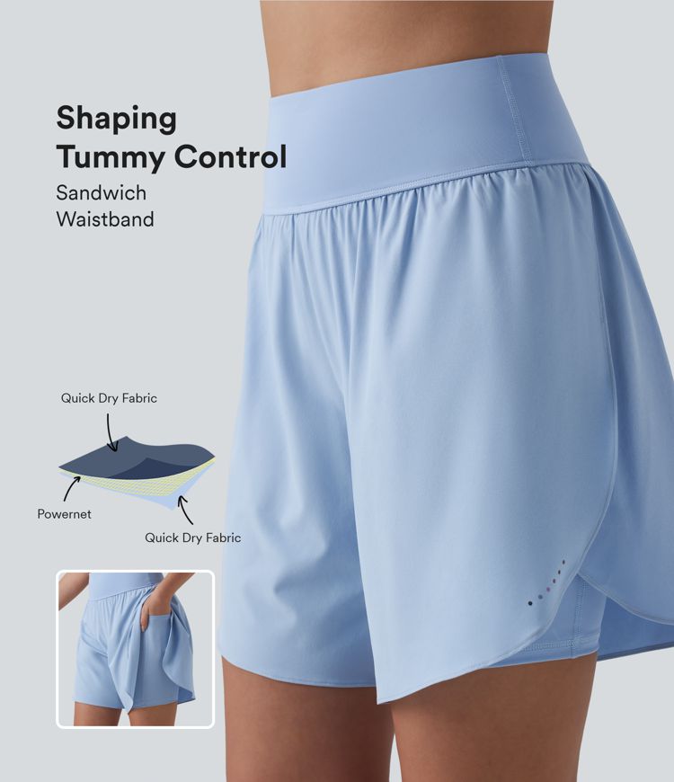 SoftlyZero™ QuickDry High Waisted Tummy Control Reflective Dots Crossover Hem 2-in-1 Running Shorts 7'' with Pockets