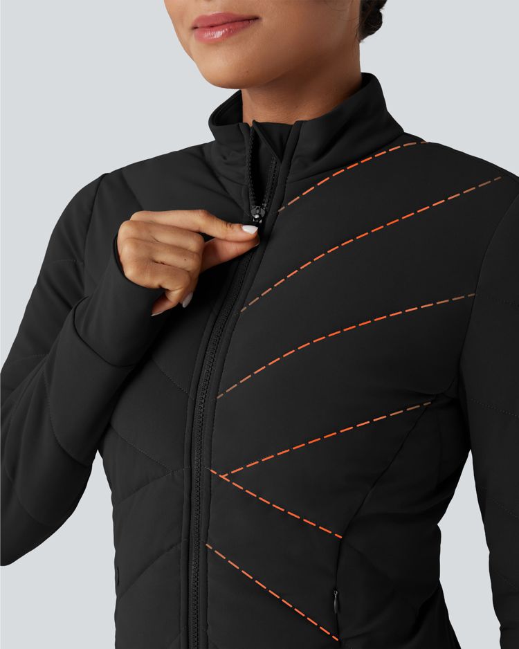 PuffFlex Stand Collar Long Sleeve Thumb Hole Casual Padded Jacket with Pockets