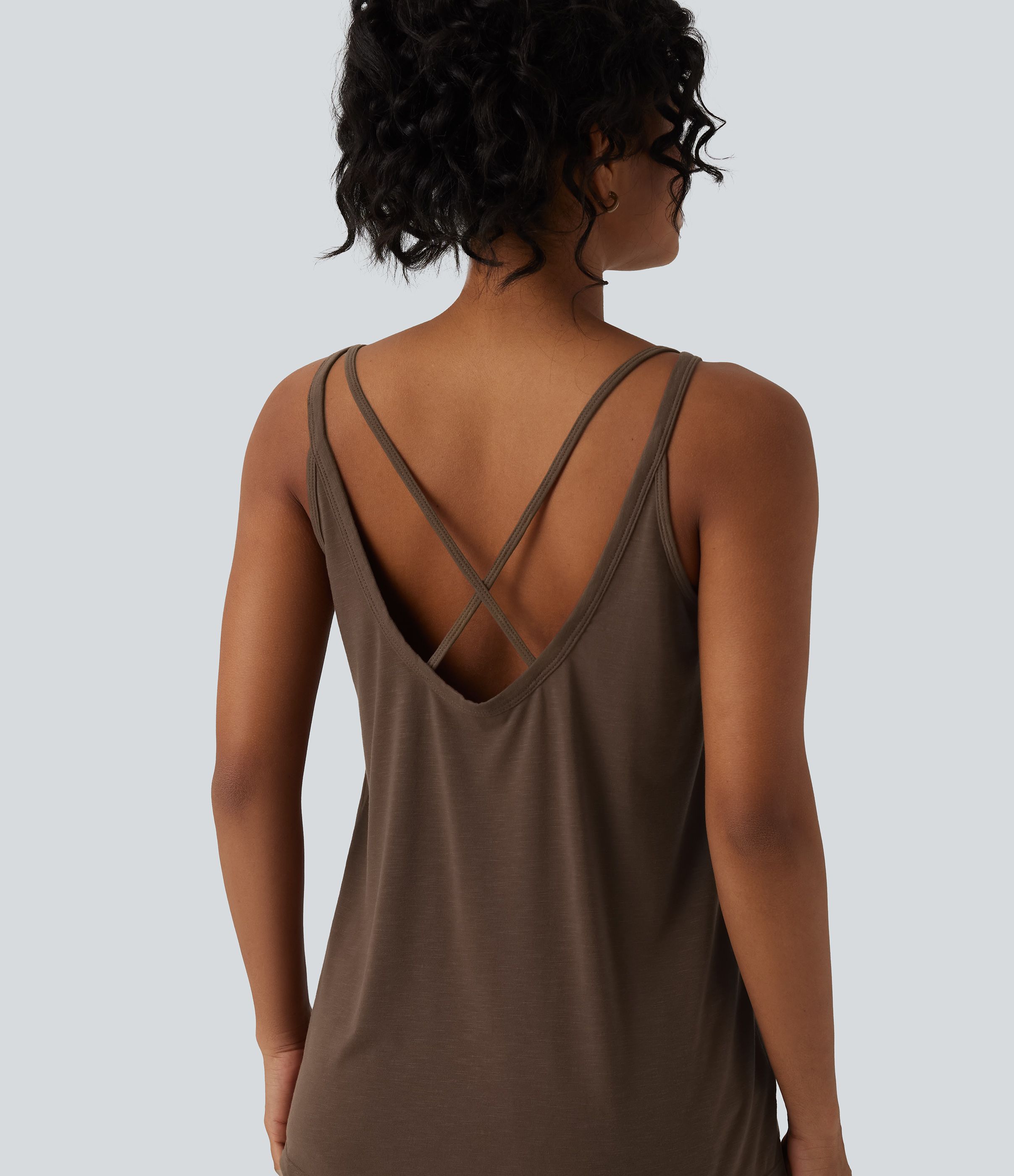 Tops ar U veida izgriezumu, brīvs ikdienas modelis