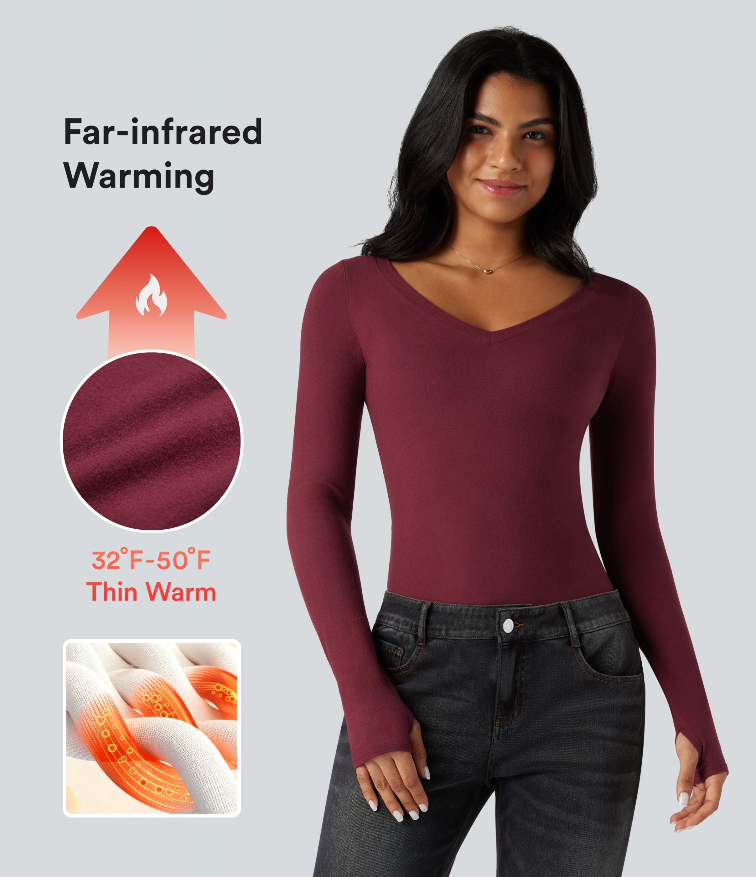 Halara HeatCore V Neck Long Sleeve Thumb Hole Casual Warming Top