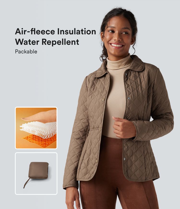 Water Repellent Long Sleeve Packable Casual Quilted Synthetic Down Jacket with Pockets