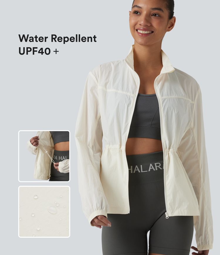 Water Repellent Long Sleeve Workout Jacket with Pockets-UPF40+